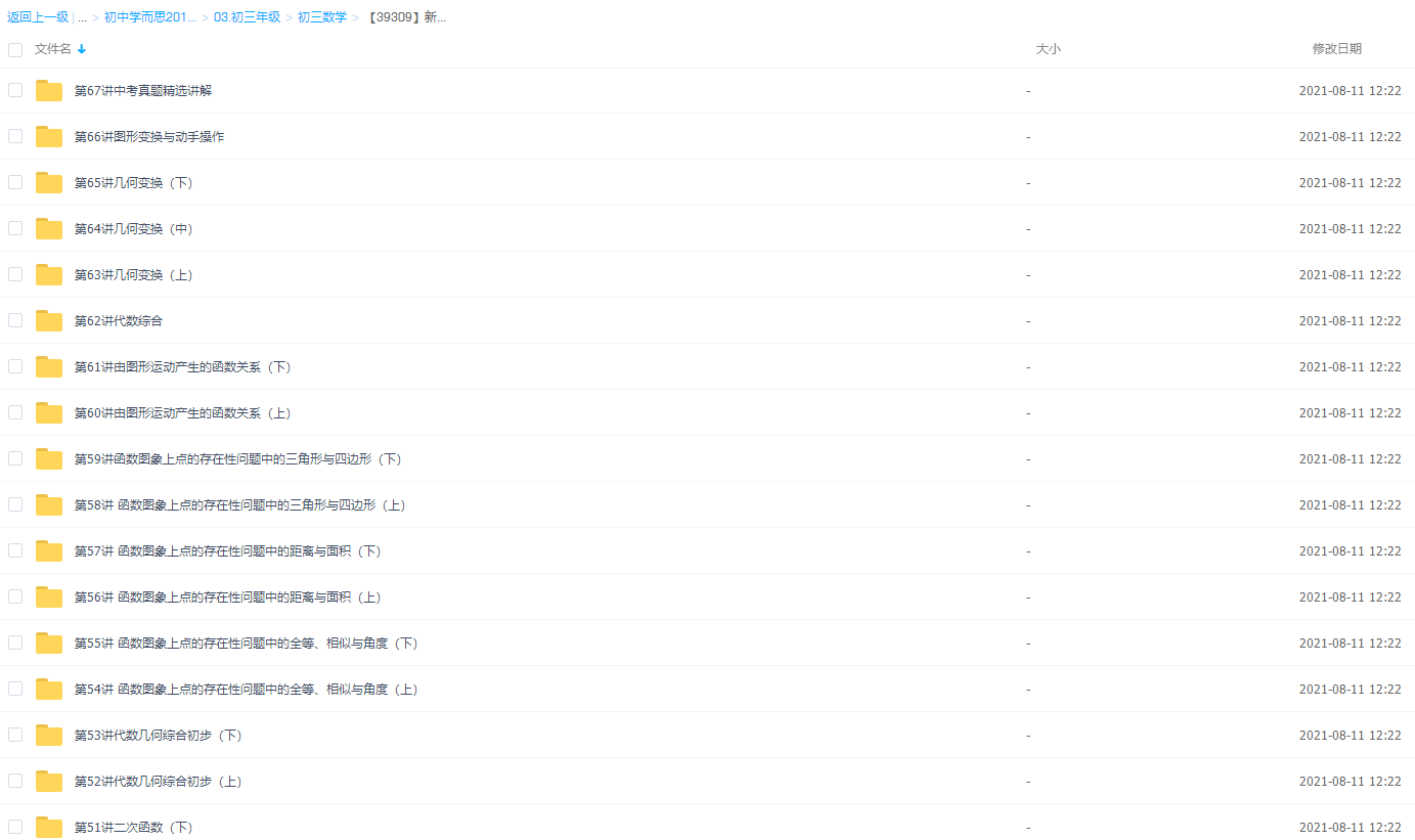 此课件来自学而思网校,【39309】新初三数学年卡(超常班) 【67讲朱韬】,包含视频课程和讲义资料 。此课件的主要内容包括: 寒假目标中考系统复习之代数几何综合初步、几何中的定值问题、二次函数特征与变换、几何不等式及最值问题、中考及模拟中的代几综合题、中考及模拟中的代数综合题、寒假目标中考系统复习之二次函数等等视频
