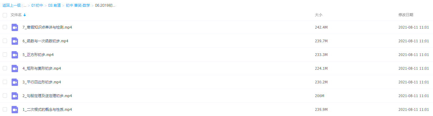 此课件来自有道精品课,初二曹笑数学寒假培优班(人教版),包含视频课程和讲义资料。此课件主要知识点包括:2019有道精品课初二曹笑数学寒假培优班,人教版百度网盘高清视频。