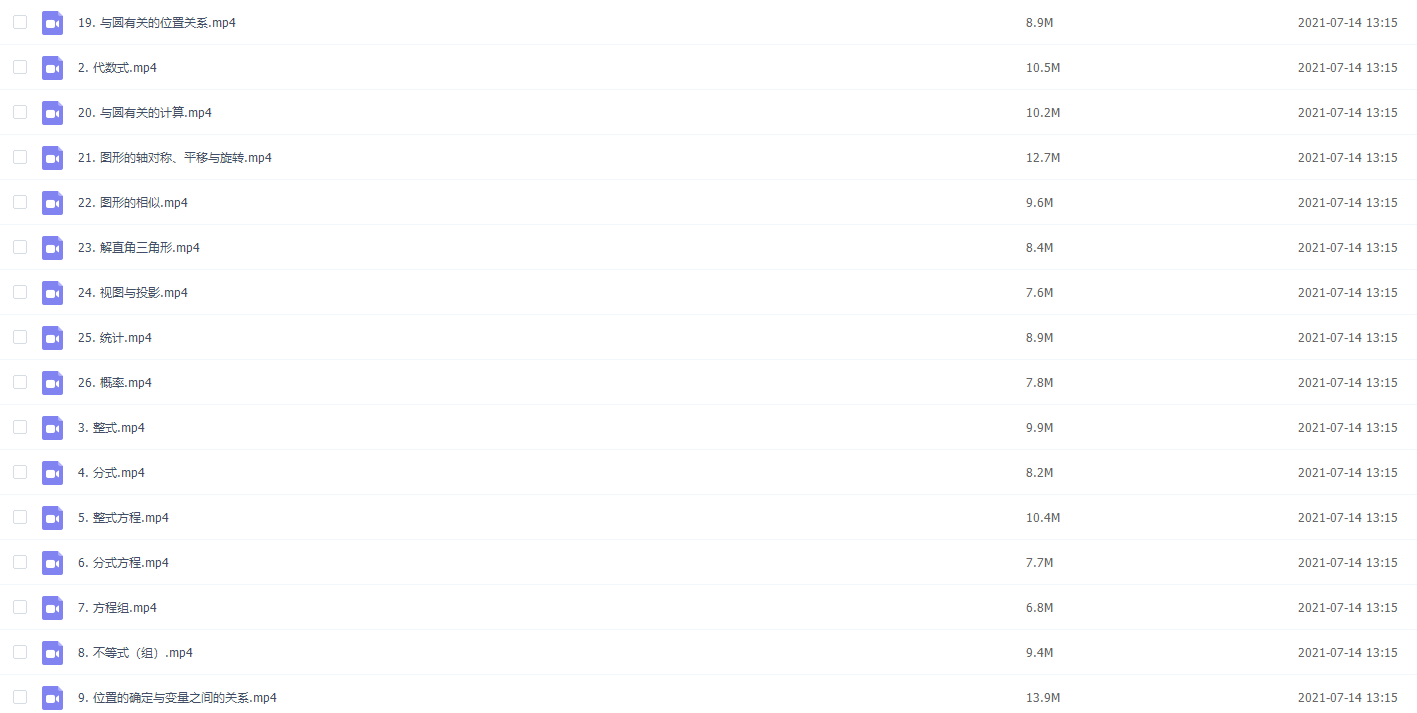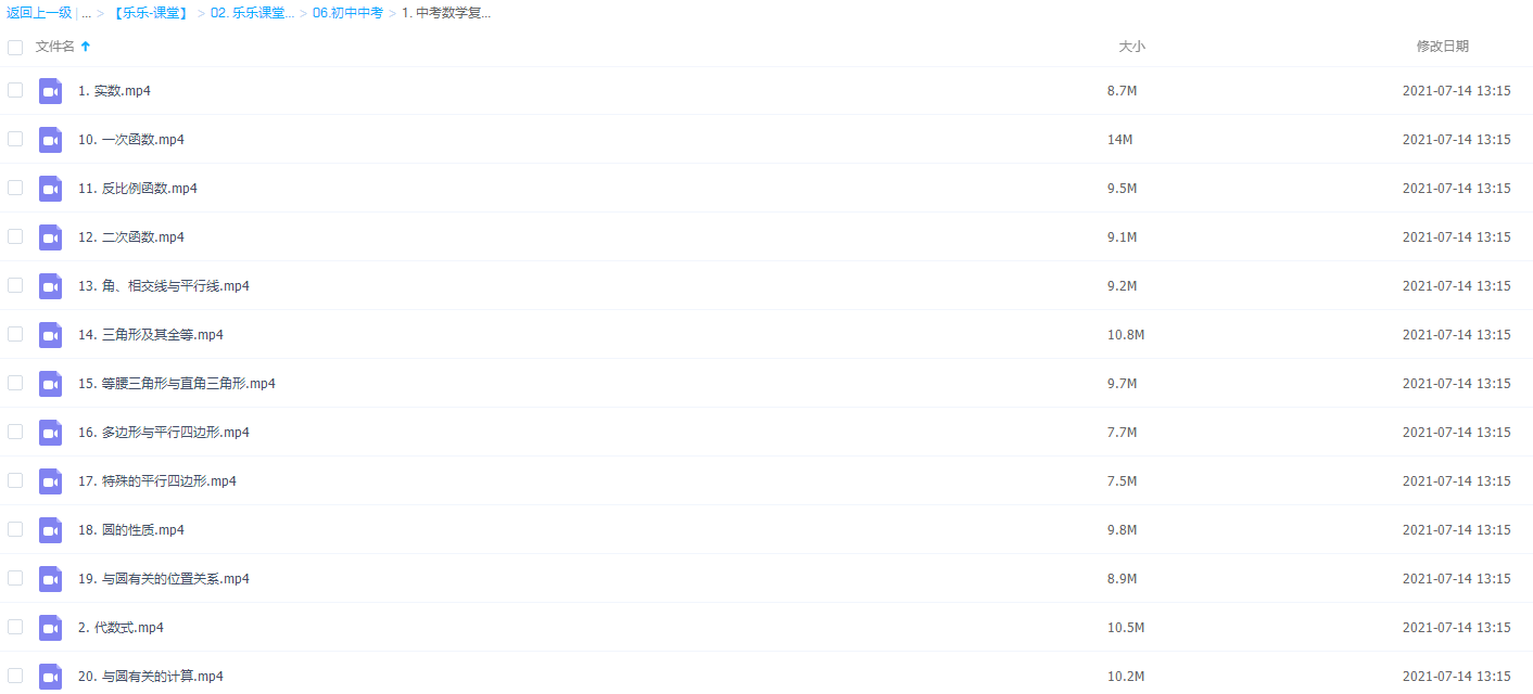此课件来自乐乐课堂,中考数学综合知识点复习教学视频26集,此课件主要知识点包括:实数、代数式、整式、分式、整式方程、分式方程、方程组、不等式(组)、角,相交线与平行线、三角形及其全等、等腰三角形与直角三角形、位置的确定与变里之间的关系、-次函数、反比例函数、二次函数、多边形与平行四边形、特殊的平行四边形等等视频。
