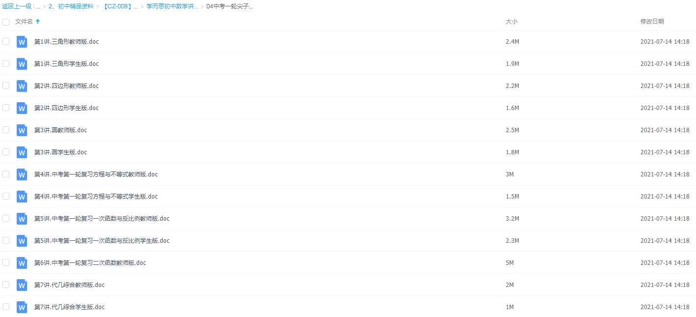 此课件来自学而思网校,初中数学中考一轮尖子班教师版与学生版Word可打印。中考一轮复习中,一定做一些针对性的题目,尤其是数学基础差的学生,需要慢慢的理解这个知识点。其次熟悉数学的基本知识概念,到了复习阶段,一定不要只做难题,要对一些基础的题目做到很熟悉的感觉。