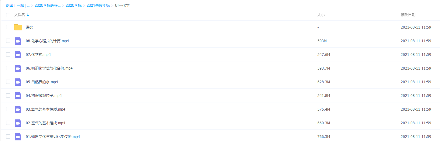此课件来自有道精品课,2021中考初三李栋化学暑期班。此课件主要知识点包括:化学方程式的计算、化学式、初识化学式与化合价、自然界的水、初识微观粒子、氧气的基本性质、空气的基本组成、物质变化与常见化学仪器等视频