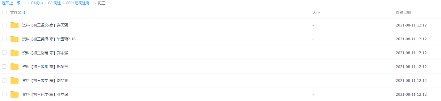 此课件来自高途课堂,2021高途课堂初三寒假全套课程,包含视频课程和讲义资料。此课件的主要内容包括:【初三语文-寒】许天翼 完结、【初三英语-寒】毕玉琦 3期、【初三物理-寒】郭志强 完结、【初三数学-寒】赵尔吉 完结、【初三数学-寒】刘梦亚 完结、【初三化学-寒】张立琛 完结。