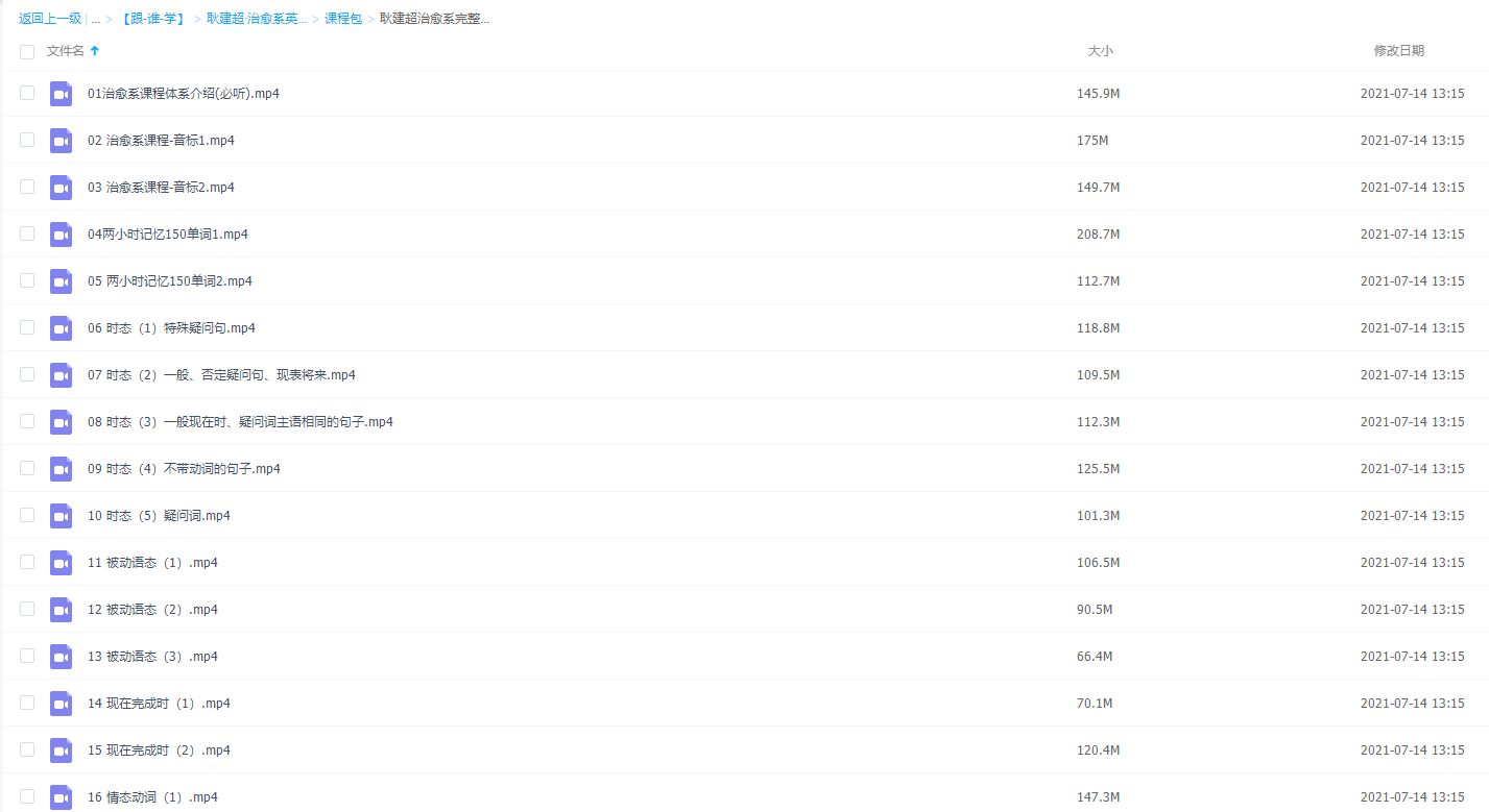 此课件来自跟谁学网校,耿建超治愈系英语七大体系八大节教学视频全集完整版。此课件主要知识点包括:音标、两小时记忆150单词、时态相关知识点、被动语态、情态动词、虚拟语气、陈述句、从句、非谓语动词、独立主格、强调句型、倒装句、现在完成时与现在完成进行时、副词与介…. .等等。治愈系英语为全中文教材,课后全部是中文句子,需要同学去造句翻译,然后只看中文,没有英语去练习反应速度!