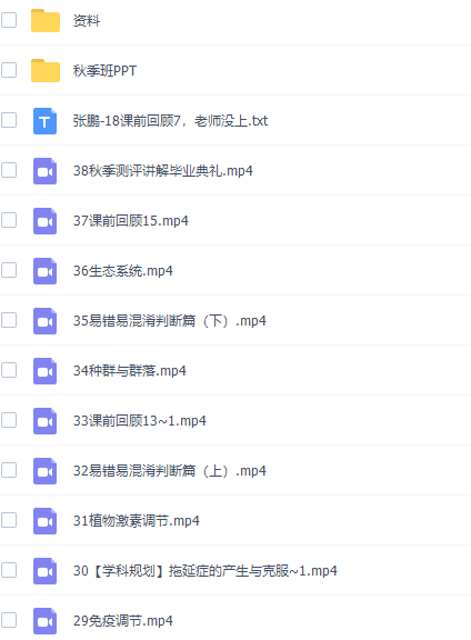 此课件来自猿辅导网校,张鹏高三生物2021年秋季A+班课程完结。此课件主要知识点包括:开学典礼、基因分离定律、自由组合定律、伴性遗传、遗传系谱图与人类遗传病、基因的本质、DNA的复制与基因的表达、生物变异、生物育种与生物进化、内环境与稳态、神经调节、体液调节、免疫调节、种群与群落、生态系统、秋季测评讲解毕业典礼。