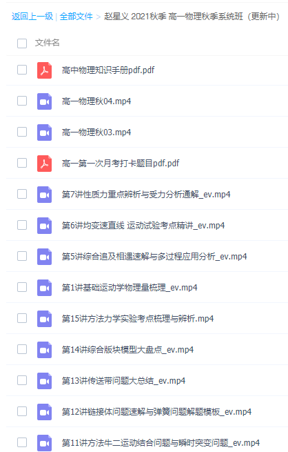 腾讯课堂赵星义2021秋季高一物理秋季班更新15讲