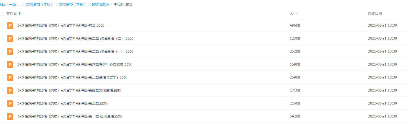 本课件是教师资格证考试李怡娴老师的政治学习课程,包含了很多知识点讲义讲解课件,可以通过练习多多记牢知识点!