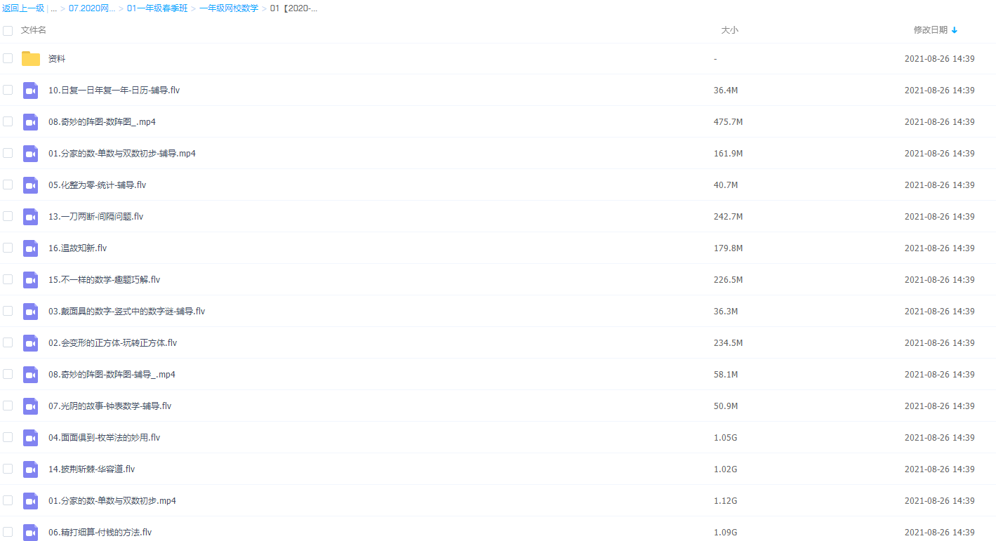 此课件来自于学而思网校课程,学而思王宝金一年级数学视频课程2020小学春季目标s班,包括课程视频回放以及课堂资料讲义。此课件主要知识点包括分家的数-单数与双数初步、化整为零-统计、一刀两断-间隔问题、.奇妙的阵图-数阵图、光阴的故事-钟表数学 等视频