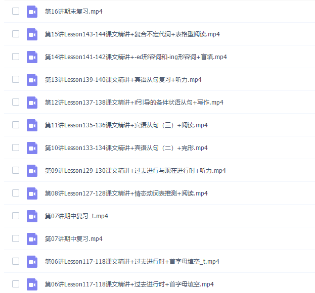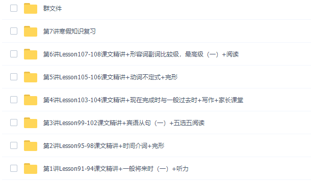 此课件来自学而思网校,刘飞飞初中英语新概念英语第一册视频课程。此课件主要知识点包括:情态动词、一般将来时、感叹句、形容词副词比较级,最高级、时间从属连词、过去进行时、宾语从句、if引导的条件状语从句、宾语从句复习、-ed形容词、复合不定代词等等视频课程。。