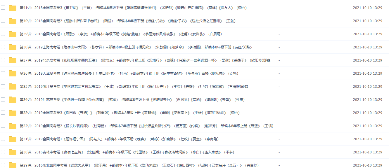 此课件来自诸葛大语文,驴火歌王中小学语文考前必备中小学古诗词鉴赏技巧50讲。此课件解决的就是同学们常遇到的古诗词读不懂,不会赏析,鉴赏题丢分的问题。邵老师在这门课里讲了四十多个常用、常考的鉴赏技巧,还通过生活中的案例、歌词、历年考试的真题举例分析,帮助你更好地理解、掌握、运用这些技巧。