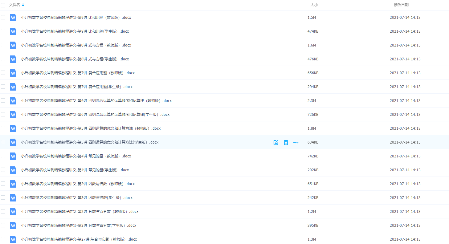 小升初的数学名校冲刺课程来了,精编教程讲义精讲+精练+精测通用版,详细的不能再详细!学习资料一套就够了,选它!